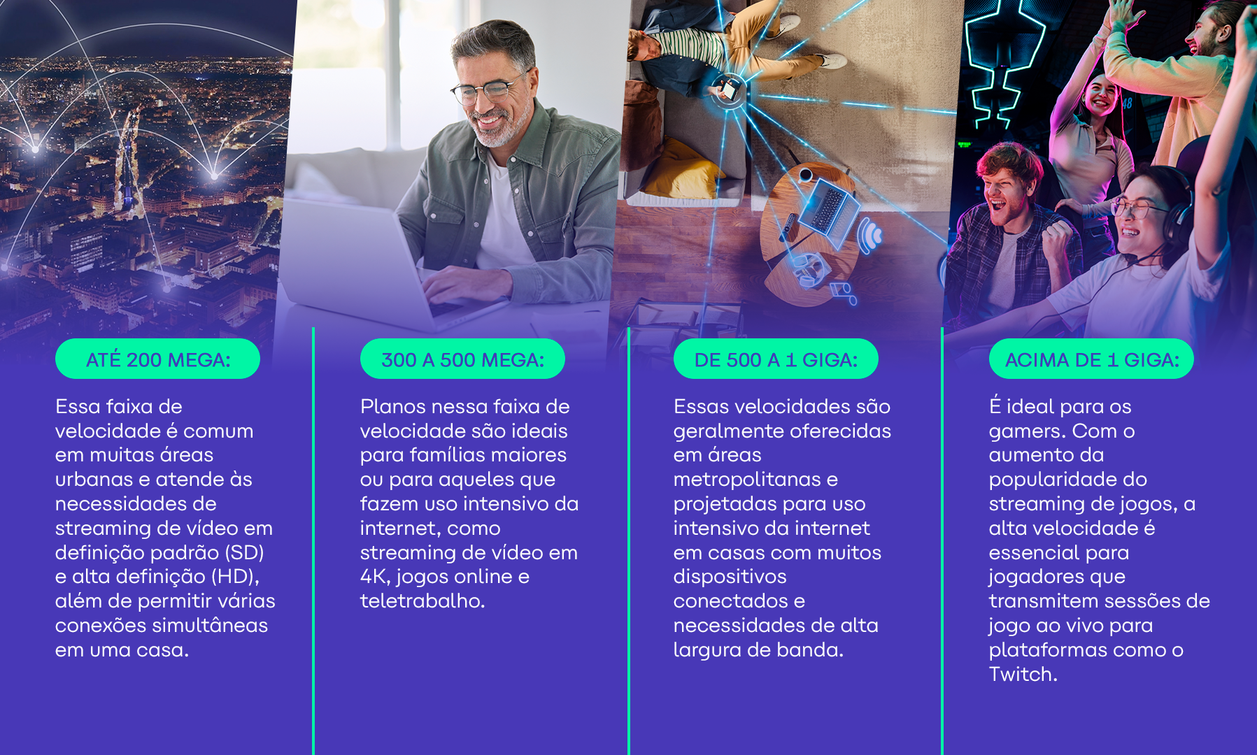Portanto, escolher uma internet residencial para atender às nossas necessidades é uma decisão cuidadosa. Para te ajudar a encontrar o plano ideal, é importante ler as informações a seguir.