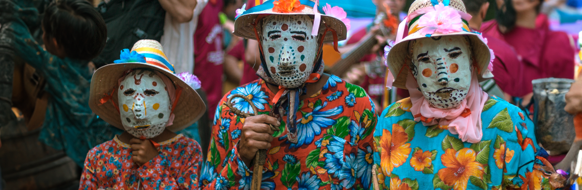Durante as festas natalinas, grupos de dançarinos se reúnem, vestidos com roupas coloridas e chapéus ornamentados, para encenar suas danças em homenagem ao Menino Jesus.